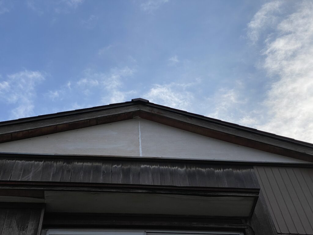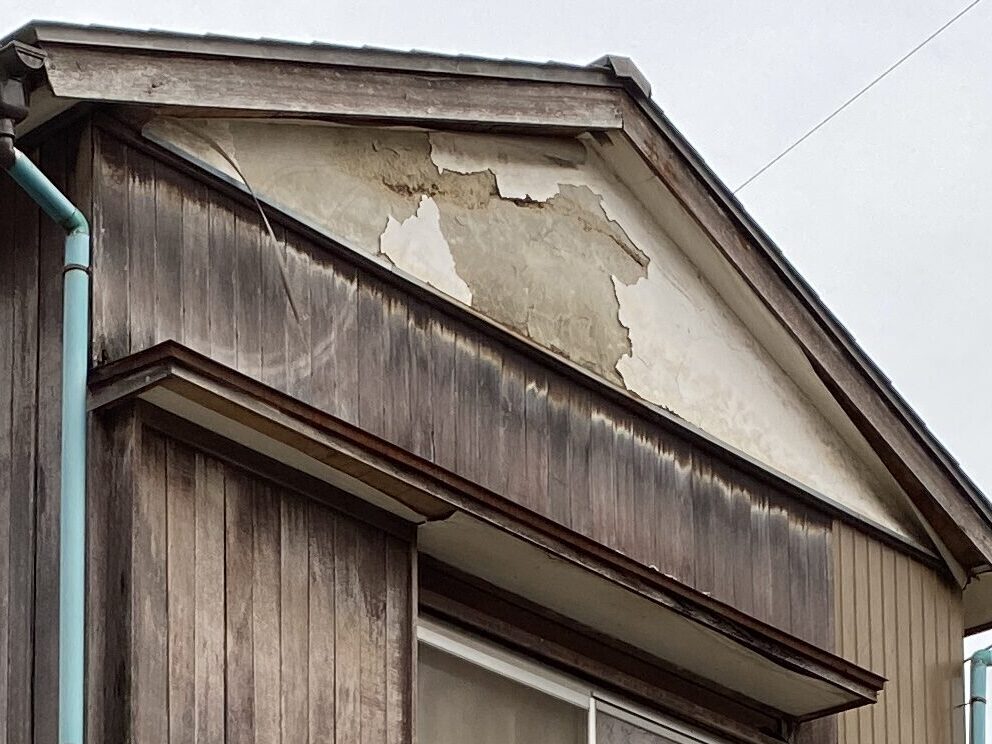 劣化と強風で漆喰壁が剝がれて下に落ちてしまいました。